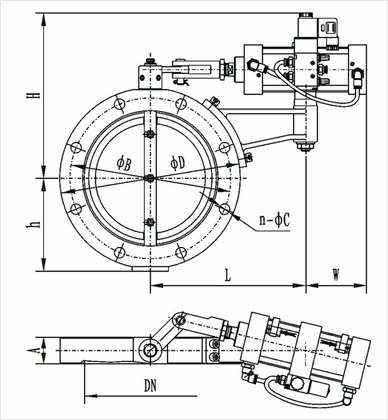 型号 | 通径(DN) | ΦD | ΦB | H | h | A | L | W | n-ΦC |